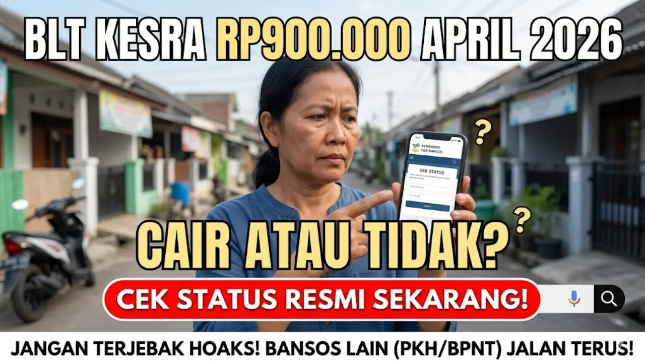 Hingga April 2026, BLT Kesra Rp900.000 tidak cair. Program ini sudah berakhir pada 31 Desember 2025 dan pemerintah belum mengumumkan kelanjutan untuk tahun 2026. Sementara itu, bansos lain seperti PKH dan BPNT masih berjalan secara bertahap.