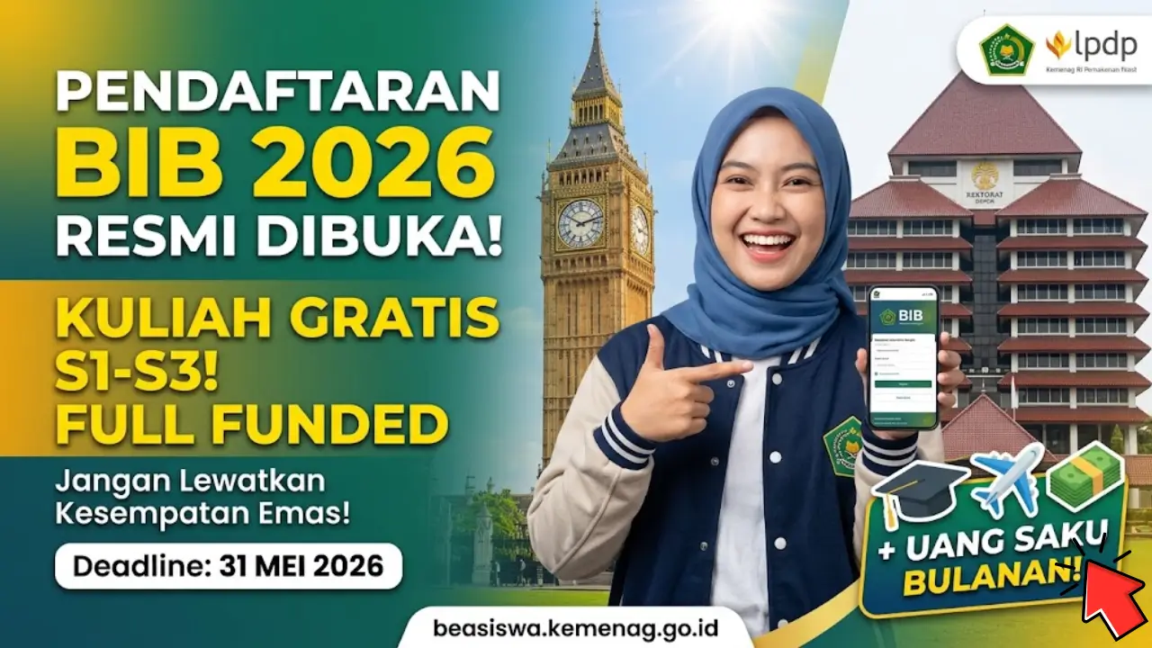 Cara daftar Beasiswa Indonesia Bangkit BIB 2026 kini resmi dibuka! Program full funded dari Kemenag dan LPDP ini memberikan kesempatan kuliah S1, S2, S3 dalam dan luar negeri secara gratis.