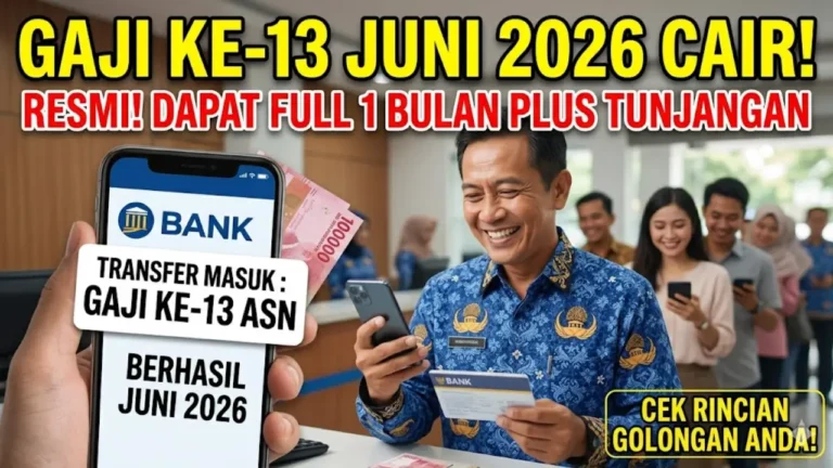 Gaji Ke-13 ASN 2026 Kabar baik bagi seluruh ASN! Pemerintah telah menetapkan jadwal pencairan Gaji Ke-13 ASN 2026 paling cepat pada bulan Juni 2026. Artikel ini membahas secara lengkap kapan cair, daftar penerima (PNS, PPPK, TNI, Polri, pensiunan, hingga pegawai non-ASN), besaran tunjangan yang setara satu bulan gaji penuh, serta tabel rincian per golongan. Dilengkapi…